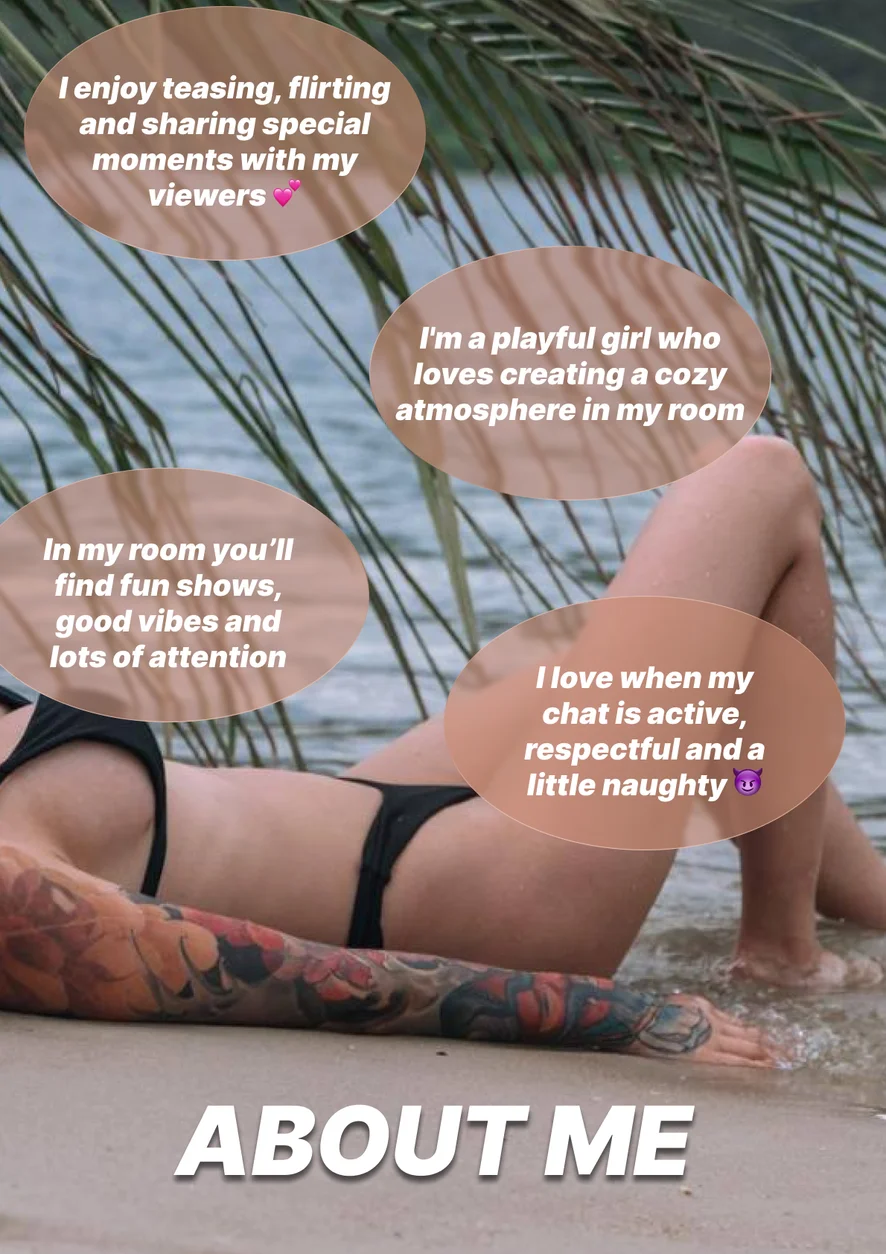 Eroottinen tanssi, Öljyesitys, Selkäsauna, Yläosattomissa, Twerkkaus, Squirttaus, Upskirt, Orgasmi, Sormetus, Masturbointi, Doggy Style, Facesitting, Strippaus, Anaali, Lehmityttö, Suihinotto, Nännilelut, Ahegao, Camel Toe, Runkkaus, Seksilelut, Creampie, Tupakointi, Dildo tai vibraattori, Anaalilelut, Hardcore, Tuhmat puheet, Vilauttelu, Nöyryytys, Toimisto